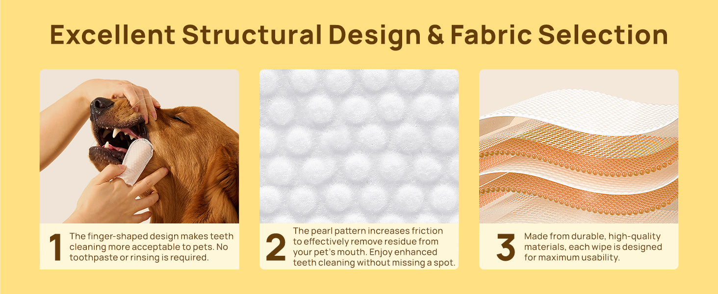 HICC Pet® Dental Finger wipes are made of soft, firm, biodegradable, non-woven fabric.